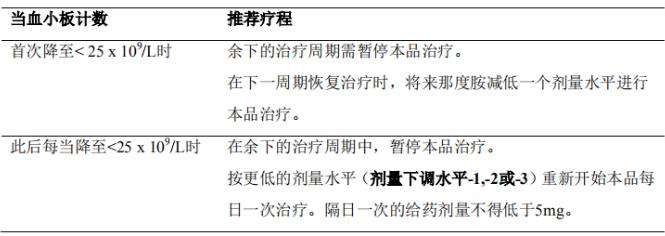 血小板计数:血小板减少时的推荐剂量调整