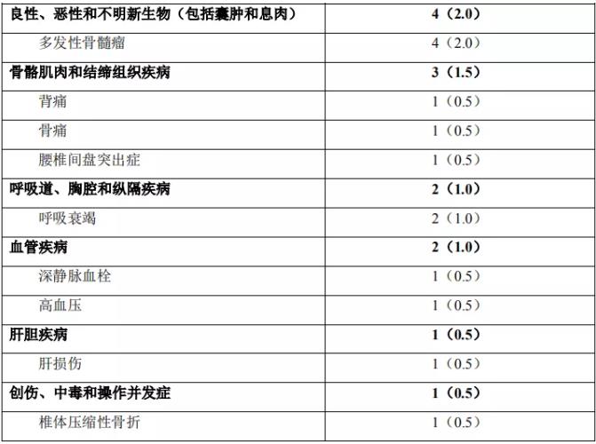 [*注:根据在中国骨髓瘤患者中进行的MM–021研究的中期数据,199例患者中,观察到1例深静脉血栓(DVT)。所有受试者依据方案均进行了血栓预防治疗。应在对个体患者潜在的危险因素进行评估后再谨慎作出是否应采取预防措施的决定。]