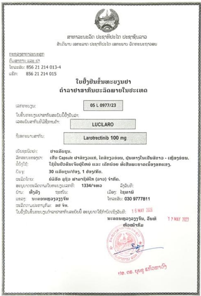 老挝国际药品批准文号: 05 L 0977/23