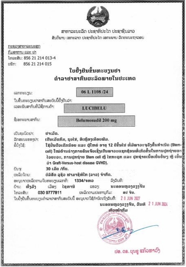 老挝国家药品批准文号:06 L 1108/24