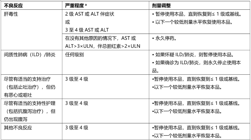 推荐剂量为960mg(8片),每天一次,直至疾病进展或出现不可接受的毒性。